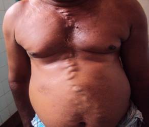 Sixty year-old male admitted for complaints of shortness of breath with dilated veins over chest wall and facial puffiness clinically featuring as possibility of superior vena caval obstruction due to carcinoma bronchus.