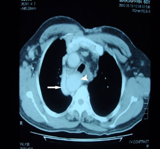 possibility of Idiopathic Fibrosing Mediastinitis. CT scan