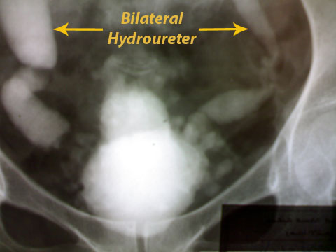Marked Hydrouerters, bladder diverticulae.